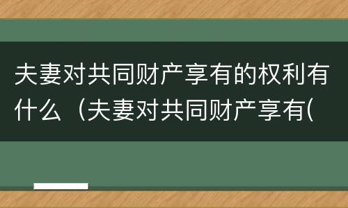 夫妻对共同财产享有的权利有什么(夫妻对共同财产享有( 权利)