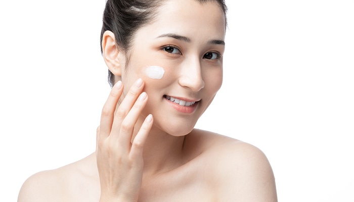 2.再取适量的面膜霜涂抹于脸上。涂抹一次面膜霜的使用量应该为普通面霜用量的2倍,以厚涂为佳,在全脸涂抹均匀,但不宜让肌肤感到厚重。