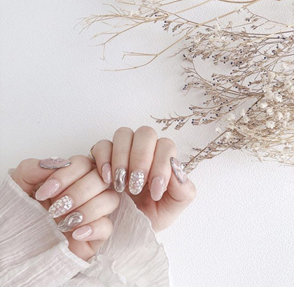 灰色都已经被称为高级灰了,不来一款灰色系的美甲好像跟不上潮流了!灰色系看起来真的很有质感,而且灰色的指甲也不挑肤色,在上面镶嵌宝石图案美腻极了!虽说灰色不挑肤色,但还是不太建议肤色太黑的女生涂哈!